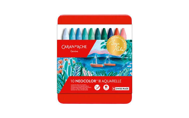 The Caran d’Ache Neocolor II Aquarelle Cool Shades by Beya Rebai is a curated collection of 10 professional water-soluble pastels, designed for artists who love depth, mood and atmospheric colour.