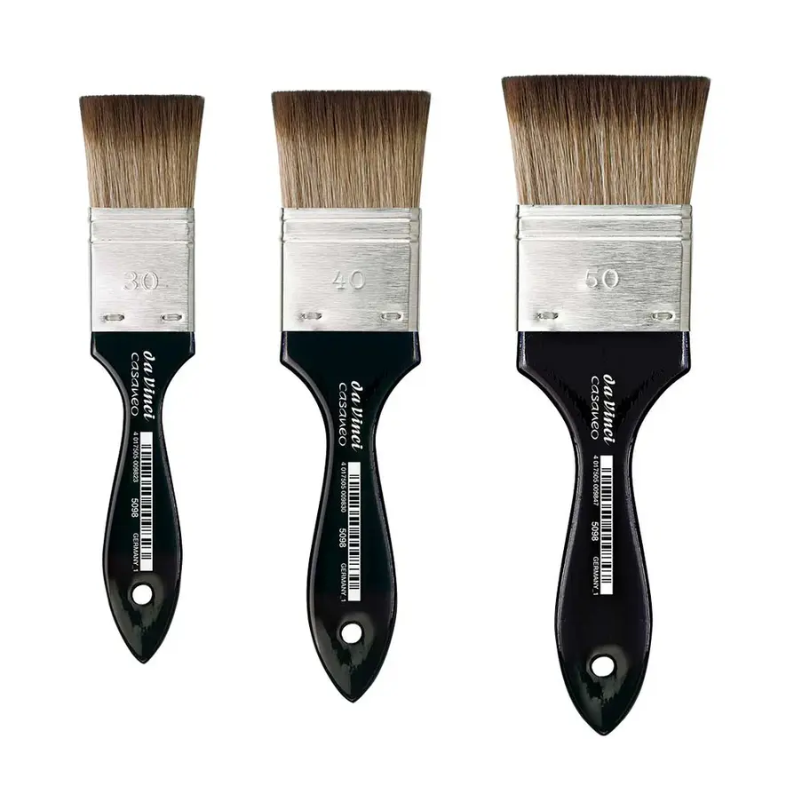 Available as flats, rounds, pointed oval, mottlers and wash brushes.