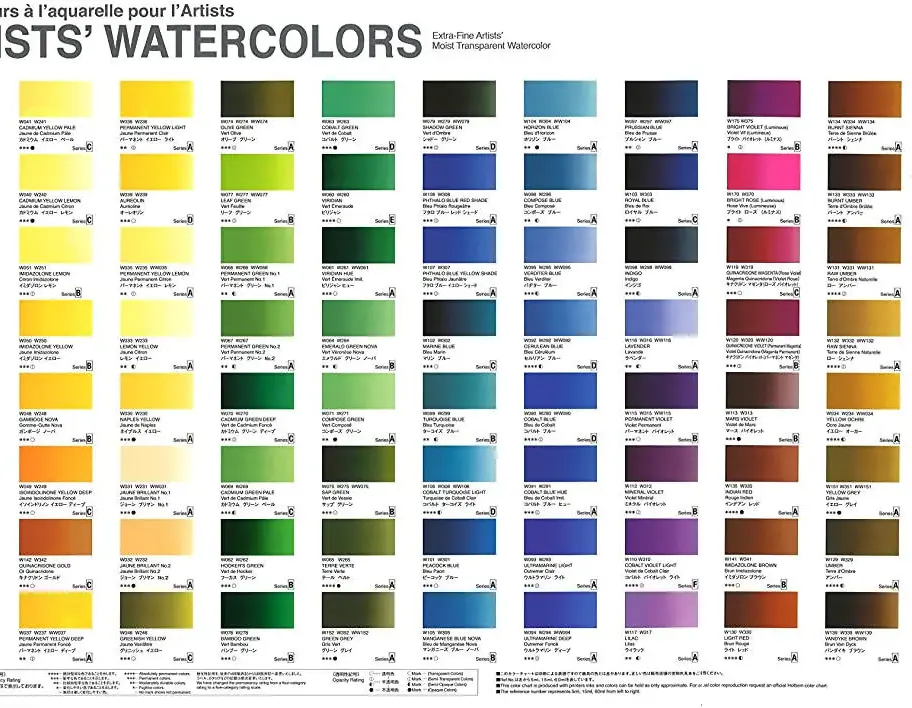 - This set provides the full variety of Holbein’s world class watercolor paints. 108 colors included, which is the entire range that Holbein produces. Features include: