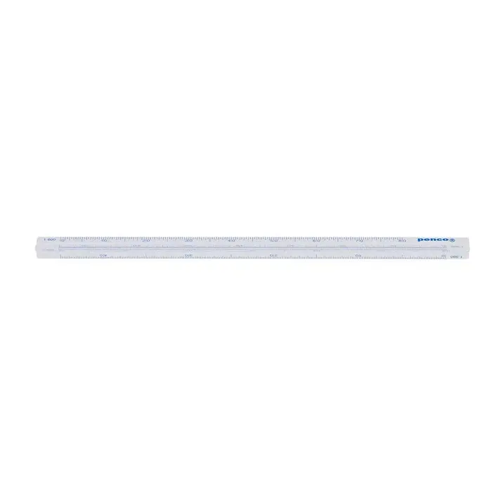 - 15cm drafting scale / Triangle, aluminium body / 1/100 to 1/600 scale / White etching / 6.65" total length / Packed in a transparent tube / Made in Taiwan