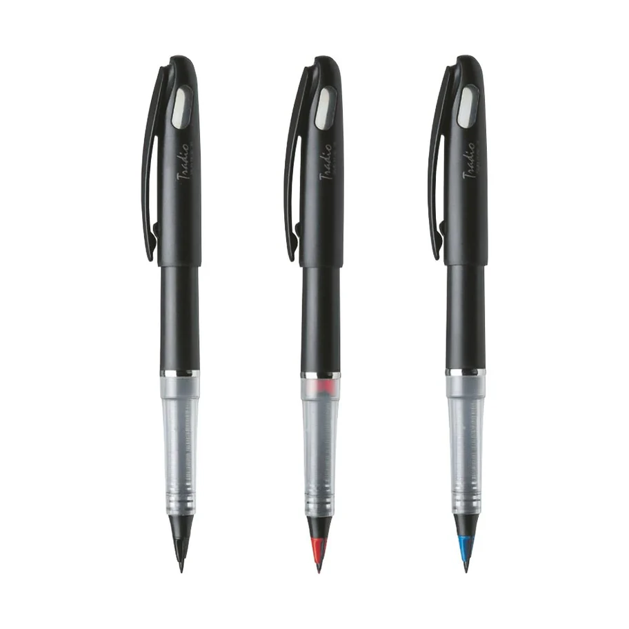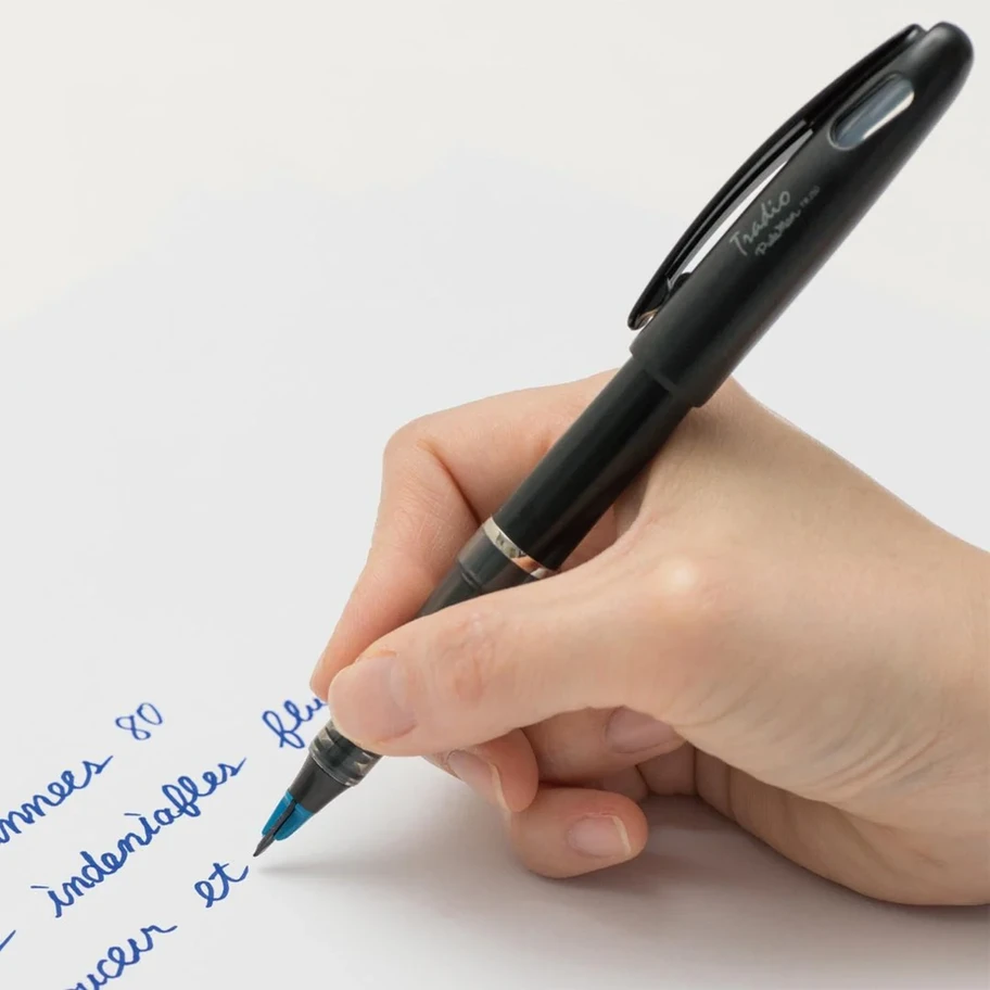 The Pentel Tradio Stylo Fountain Pen is a modern writing essential that blends fountain-pen character with everyday convenience. Featuring a flexible plastic nib, the Stylo offers expressive line variation — from fine to bold — depending on writing pressure and angle.