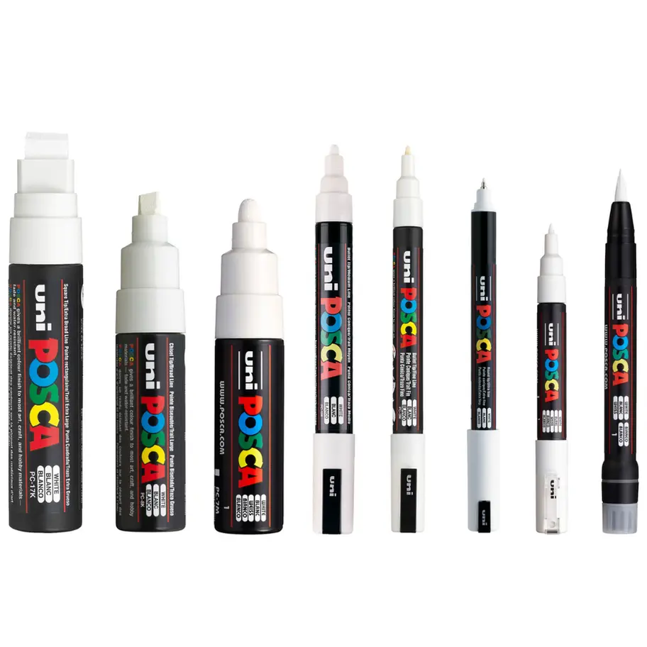 Uni Posca Marker Set of 8 Assorted Tips – White | Acrylic Paint Marker Set