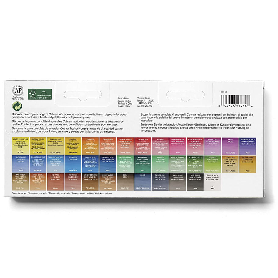 Set Includes 45 Assorted Cotman Water Colour half pans, with integral palette